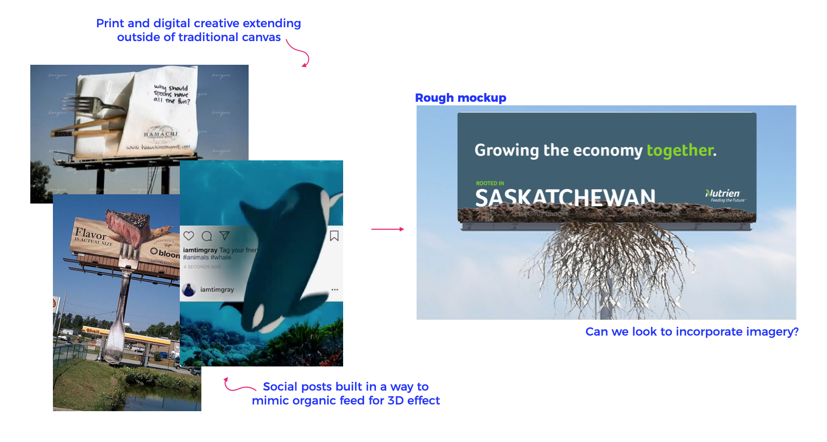 In addition to the visual elements of the campaign, I also played a critical role in directing the creative team to ensure that the campaign was cohesive and communicated the desired message effectively. Through careful planning and execution, we were able to develop a powerful and impactful campaign that not only successfully communicated Nutrien's deep connection to the province of Saskatchewan, but also earned rave reviews and strong engagement from the community. The campaign was a shining example of how strategic thinking, creative execution, and a deep understanding of the audience can lead to a successful and impactful marketing campaign. A few of my responsibilities included: